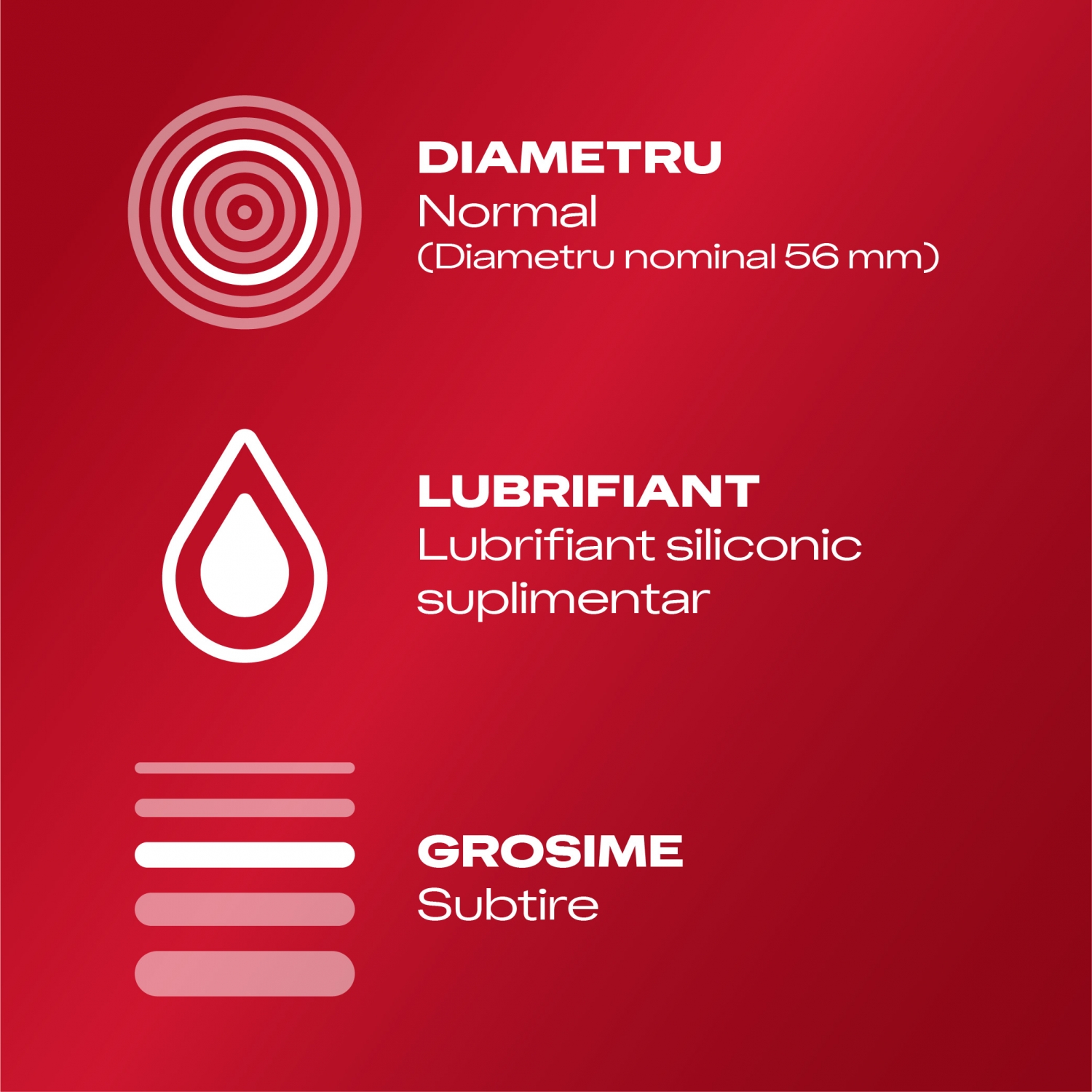 Prezervativele Feel Intimate sunt subtiri, cu lubrifiere suplimentara, oferind astfel o senzatie naturala si crescand placerea.