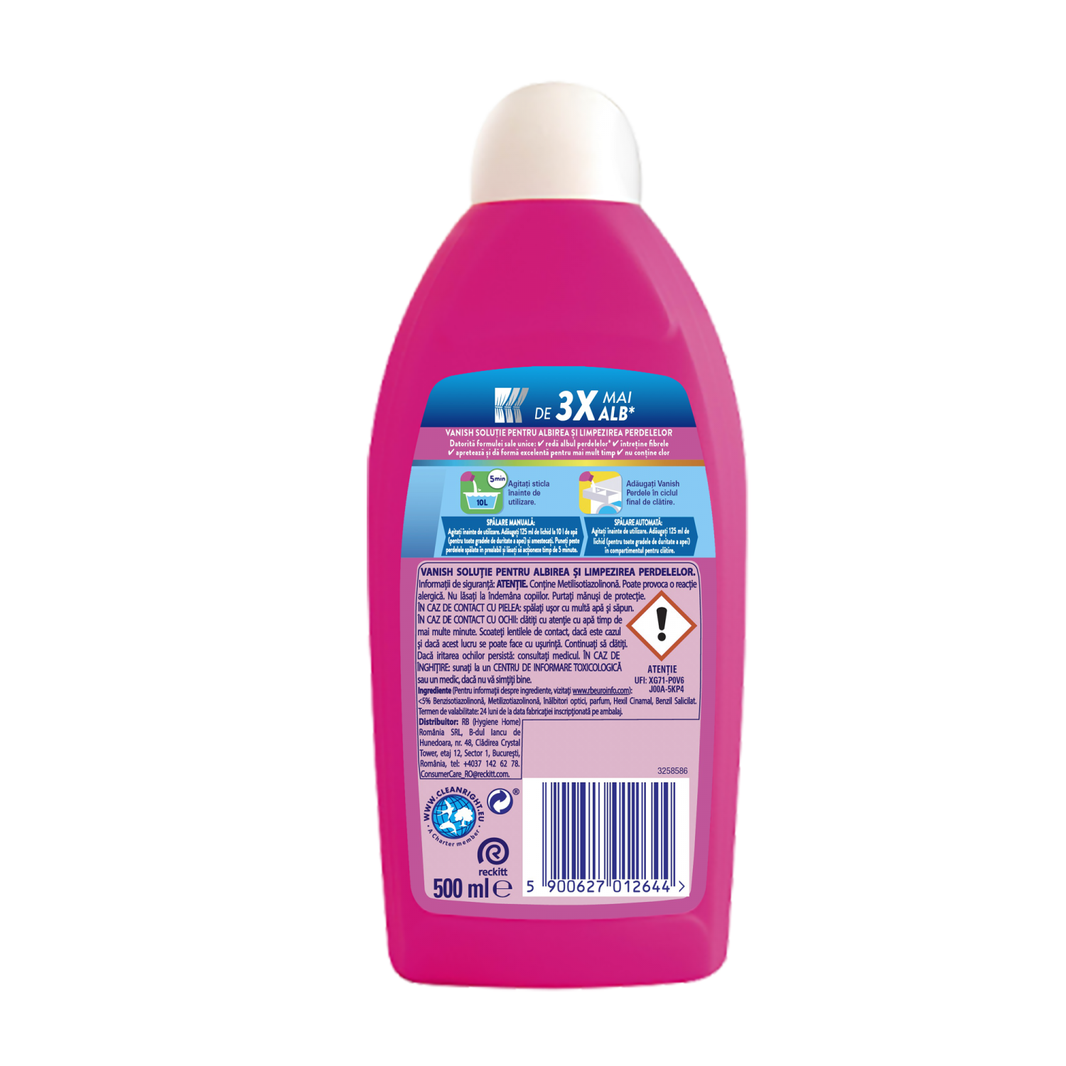 Adaugati Vanish Perdele in ciclul final de clatire. Agitati sticla inainte de utilizare.